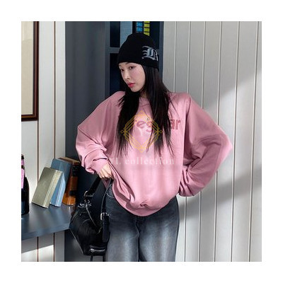 여성 칸슈린 오버핏 라운드 레터링 맨투맨