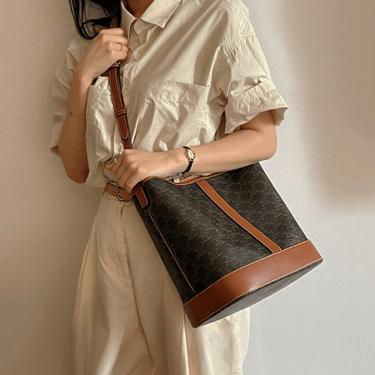 - [셀린느 트리오페 캔버스 카프스킨 버킷백 스몰/ 미디움] 사용후기 입니다.