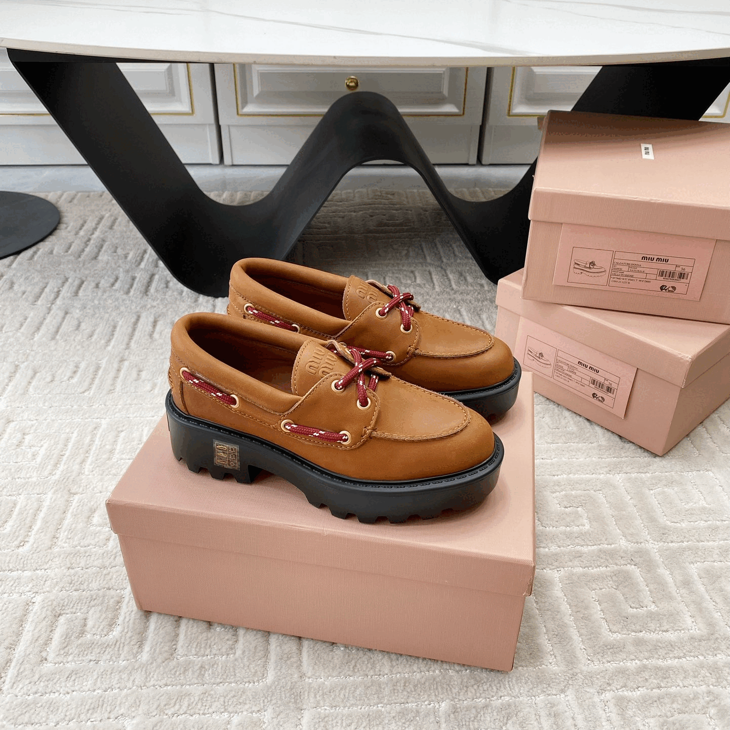 미우미우 가죽 로퍼 코냑