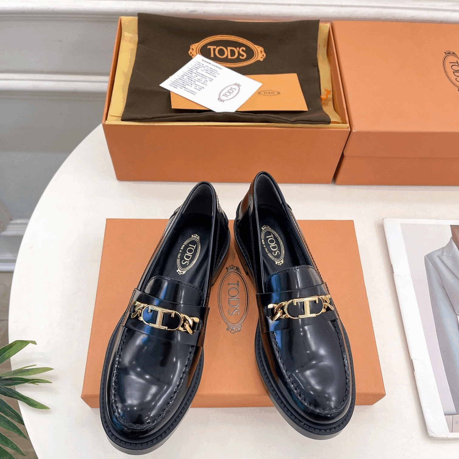 토즈 여성 TIMELESS 스몰 T버클 가죽 로퍼