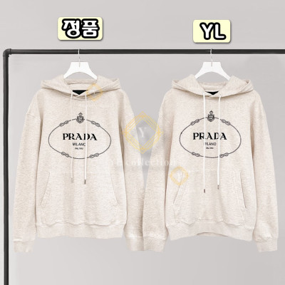 프라다 로고 자수 드로스트링 후드 베이지