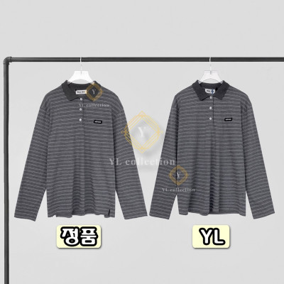 미우미우 코튼 저지 폴로 셔츠 슬레이트