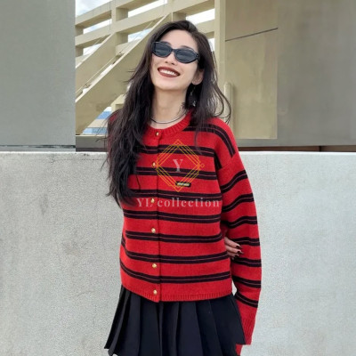 미우미우 로고 라벨 스트라이프 가디건